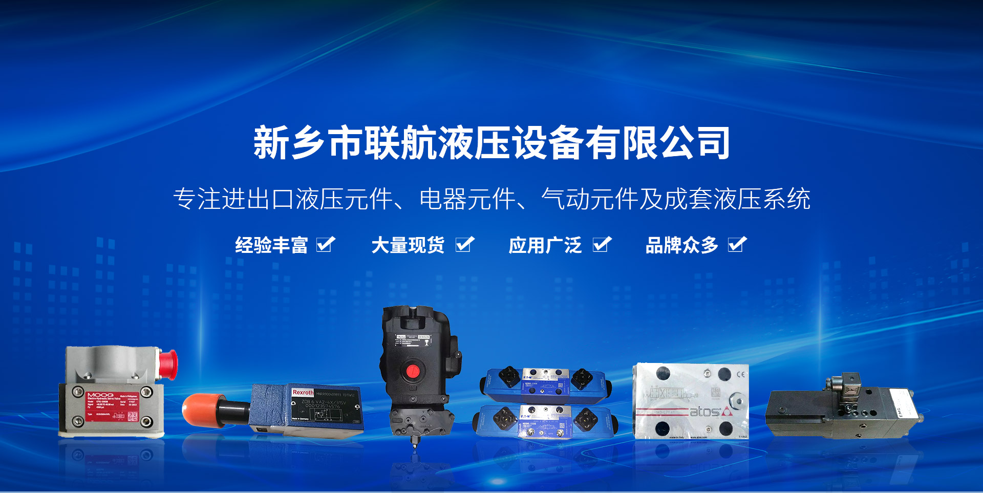 我公司是一家從事進出口液壓元件,電器元件,氣動元件及成套液壓系統選型、設計、售后與技術支持的一家技術服務企業,我們有技術人員和銷售團隊,先進的檢查設備,對電液比例閥、電液伺服閥售后及系統調試都有豐富的經驗,公司從事液壓技術行業多年,產品涉及航天、船舶、汽車、冶金、電力、礦山、石油、水泥,造紙,注塑,人造板,工業制造,勘探等部門,為了縮短產品供貨期,公司備有大量現貨,2015年成立至今,公司秉承“ 誠信,創新,共贏‘’的發展理念礪礪前行?! 〗洜I理念: 以人為本,科技創新,和諧發展!  價值觀念: 追求價值是我們工作的起點、創造價值是我們人生的動力、實現價值是我們追求!  企業文化:  誠信,務實,創新!  經營品牌:力士樂Rexroth 、穆格MOOG、 派克Parker、 伊頓威格士EATON(VICKERS)、 阿托斯ATOS、 丹尼遜DENISON、哈威HAWE、北美North Amerrican、易安基EMG、 賀德克HYDAC、 福伊特VOITH、丹佛斯DANFOSS、勝凡SUNFAB、 馬祖奇MARZOCCHI、 奧蓋爾OILGEAR、 油研YUKEN、施耐德Schneider、 川崎KPM、 威納WOERNER、布赫BUCHER、林德LINDE、萬福樂Wandfluh、不二越NACHI、 明星star、迪普馬DUPLOMATIC、羅茨RONZIO、馬勒MAHLE、頗爾PALL、翡翠MP-FILTER、雅歌輝托斯ARGO-HYTOS、太陽SUN、阿隆ARON、諾冠NORGERN、海德福HYDFORCE、609所、704所、航天18所、303所,441廠、費斯托FESTO、亞德客AirTAC、韓華HANWHA 史弗特SEFORT、海德漢HEIDENHAIN、 亨士樂Hengstler 、貝加萊B&R、 西門子SIEMENS、西克SICK 、圖爾克TURCK 、易福門IFM、皮爾茲PILZ、歐姆龍OMRON、Samek、SMC、ABB、MPM、E+H、 MTS